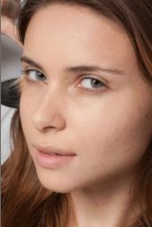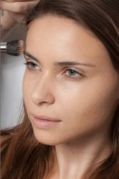 osso e ponta do nariz. Espalhe o produto com o mesmo pincel usado para